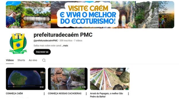 Caém lança canal oficial no YouTube para divulgar seus atrativos turísticos