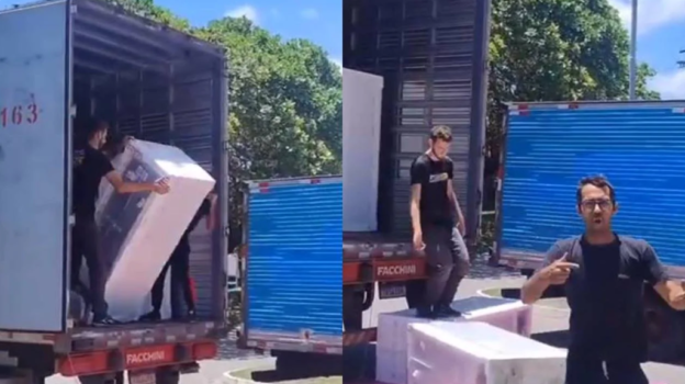 Caminhoneiro joga carga de geladeiras no chão após 5 dias de espera em CD na Bahia (VEJA VÍDEO)