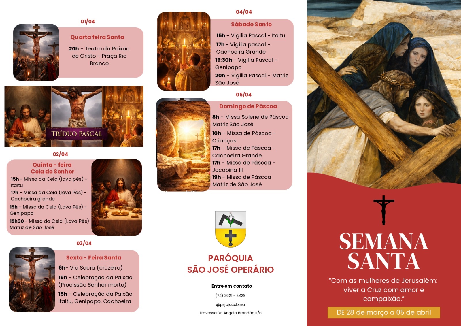 Com o tema “Com as mulheres de Jerusalém: viver a Cruz com amor e compaixão”, atividades buscam reunir a comunidade para vivenciar o mistério central da fé católica; destaques incluem procissões e o Tríduo Pascal.